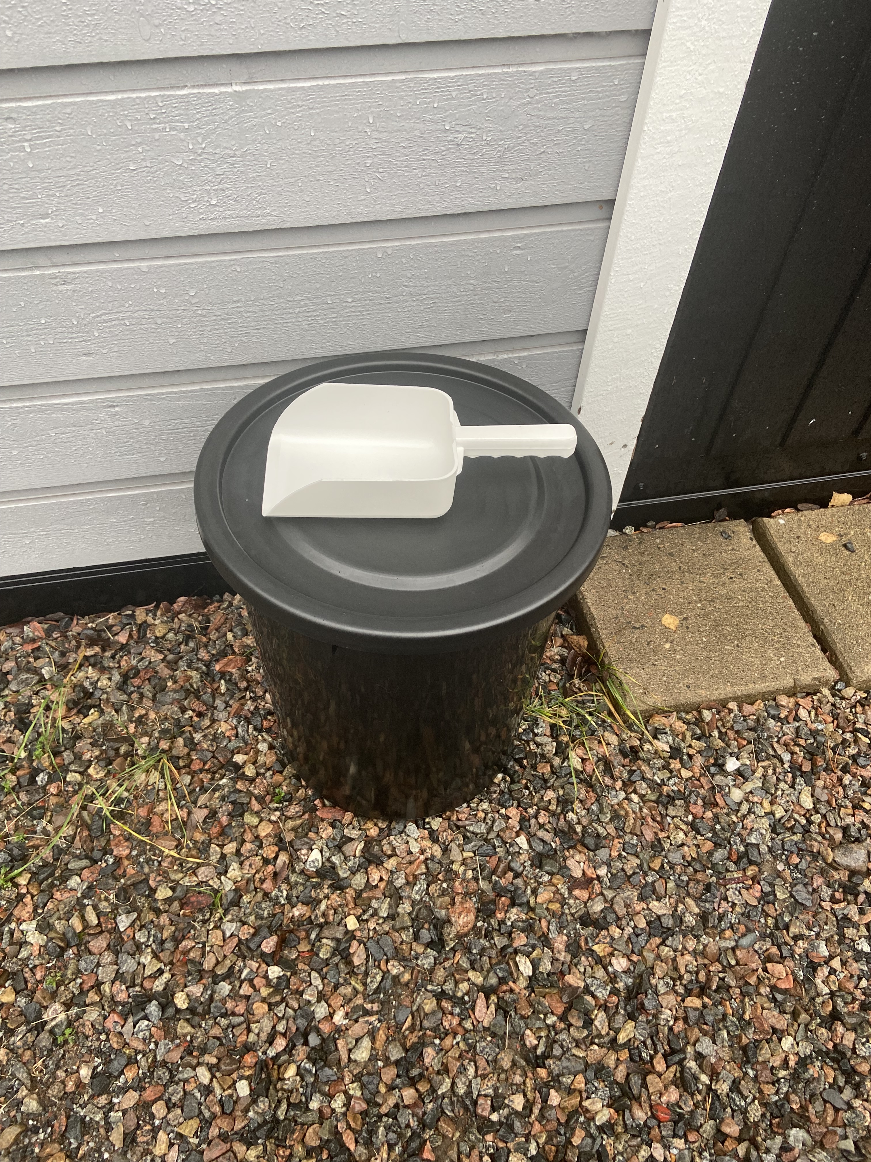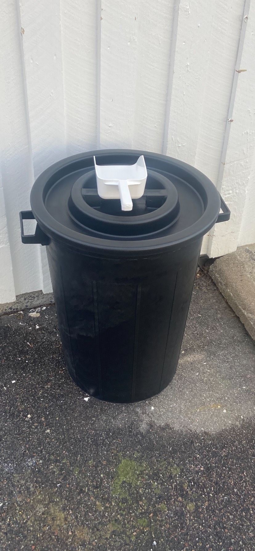 75 liters tunna med lock innehållande gruskross med eller utan tösalt, säg till vid beställning. PRIS 500 kr inkl. moms.