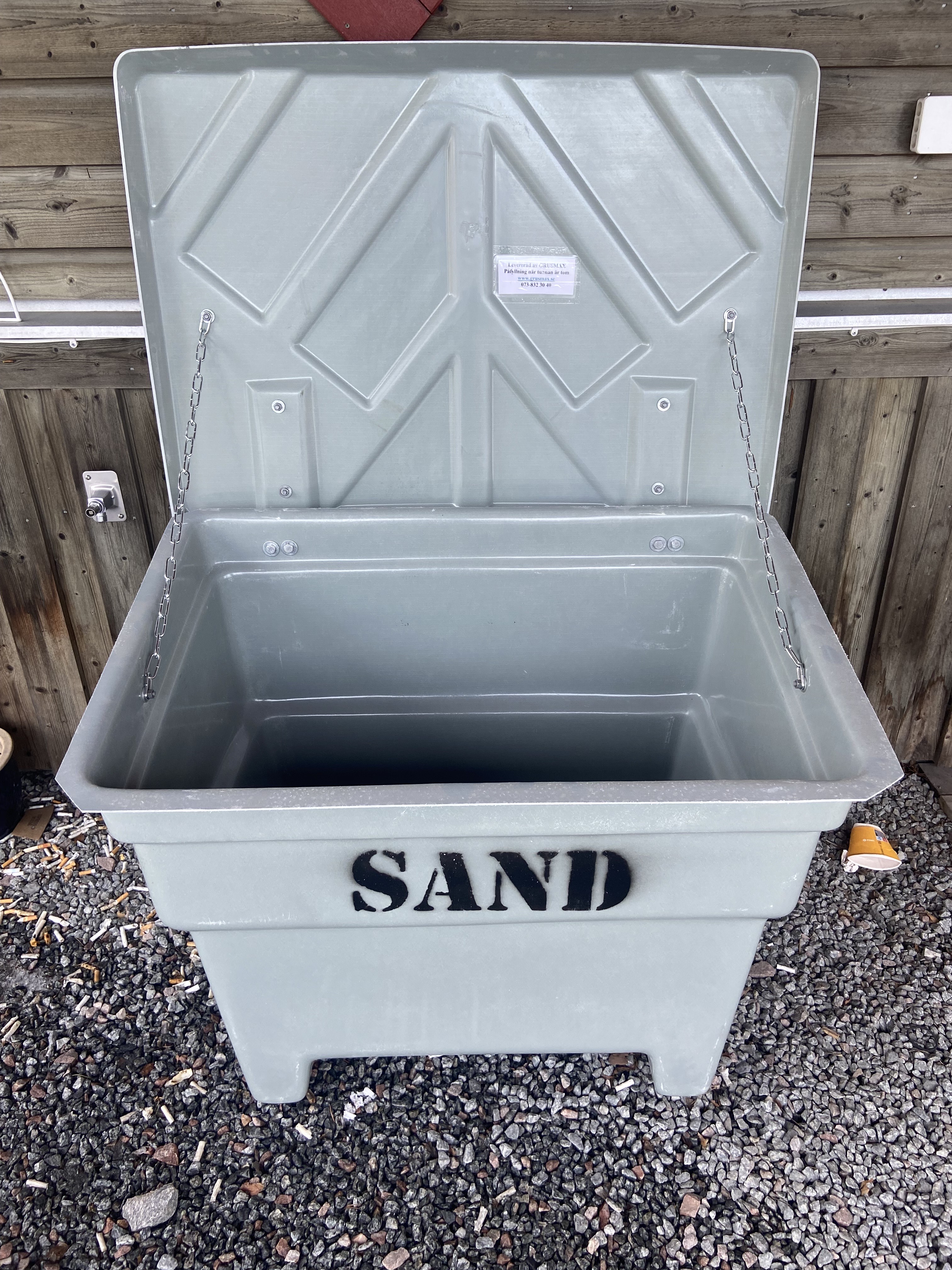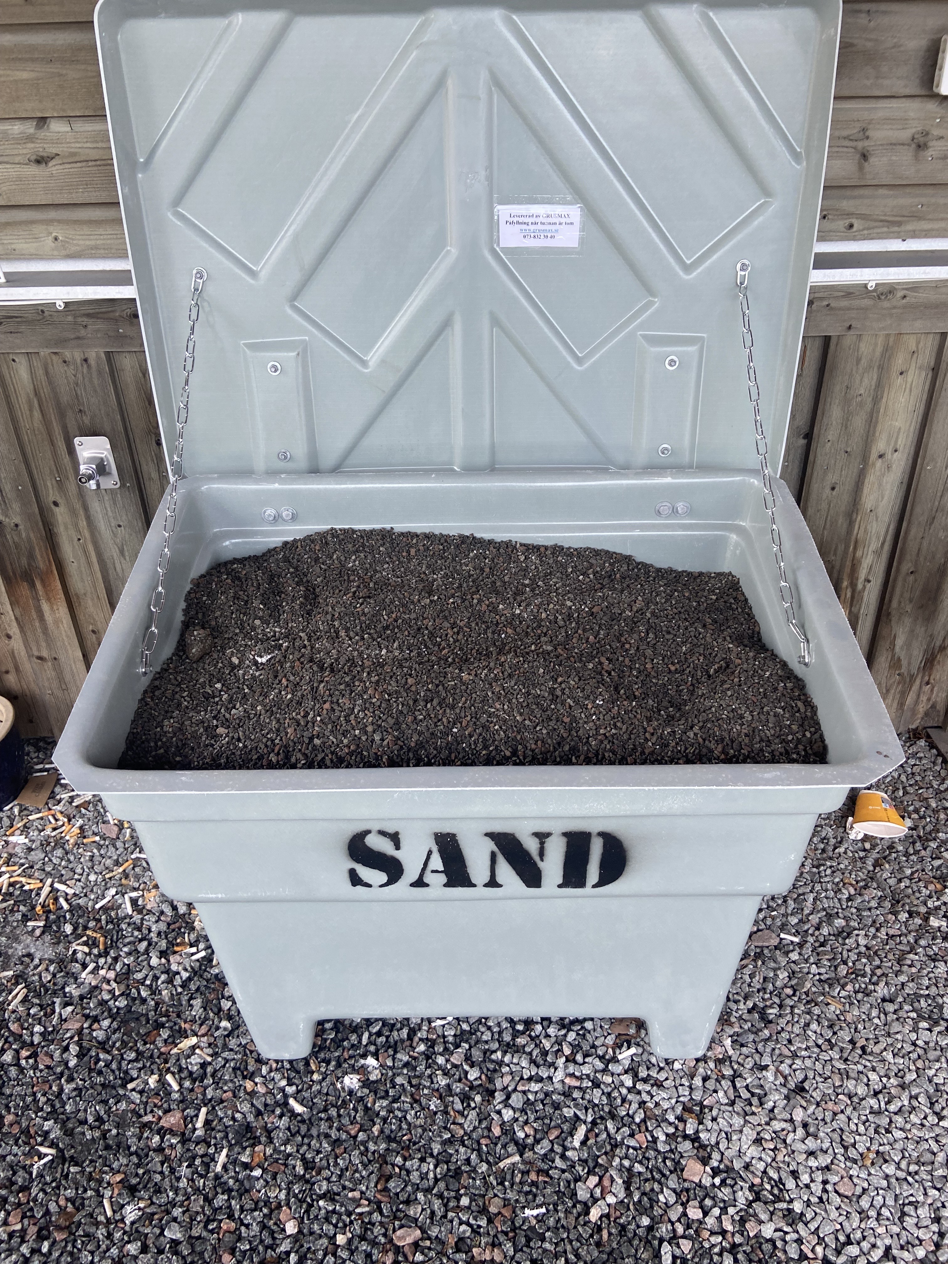 GRUSMAX säljer GRUSLÅDOR OCH tunnor med gruskross till hushåll och företag. Leverans till din dörr.